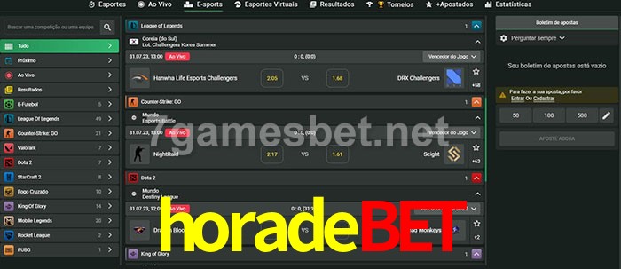 O horadebet oferece uma grande seleção de opções de apostas em e-sports com probabilidades competitivas
